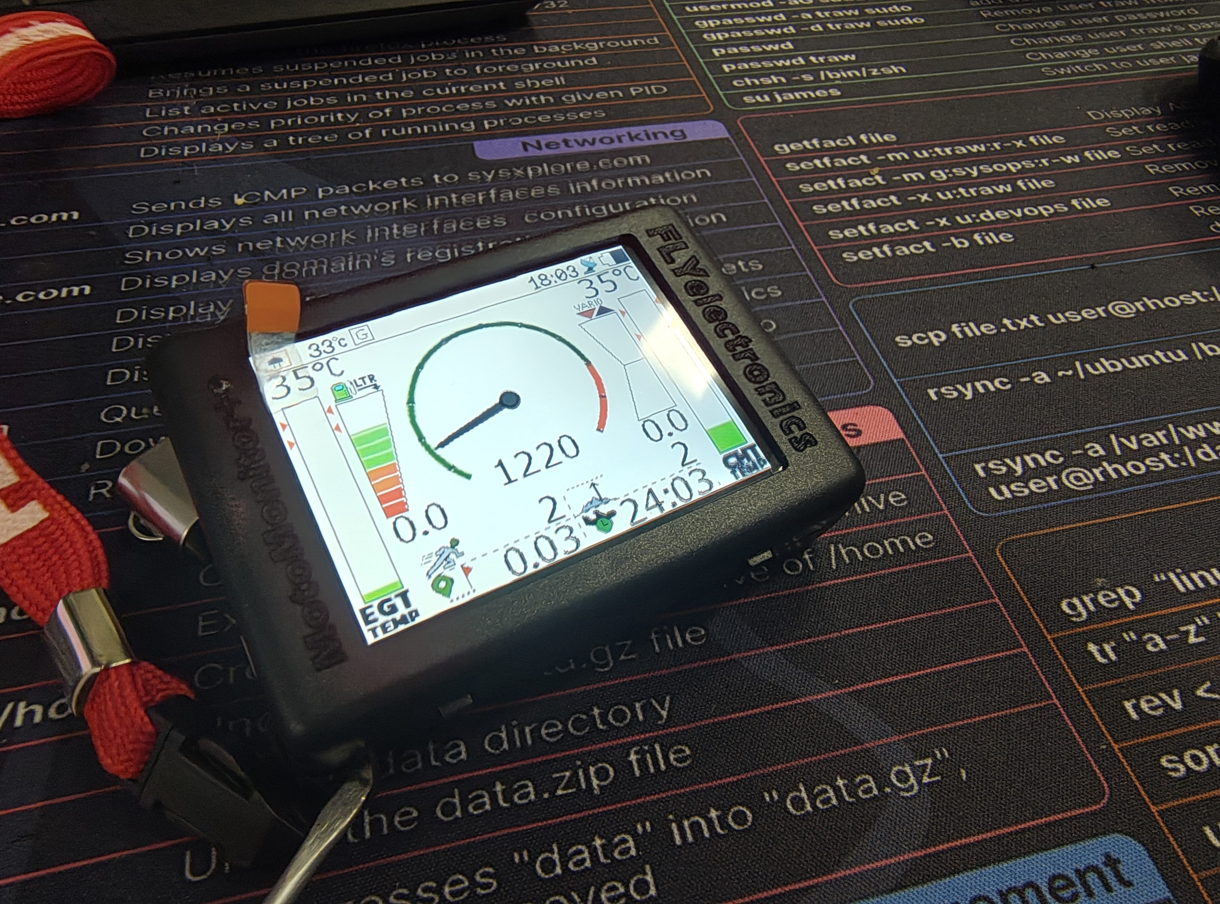 - „EGT:” – Wartość temperatury głowicy pobrana z określonego wejścia, podana w °C, Pokazywana w formie liczbowej oraz słupka którego kolor zmienia się od zielonego po czerwony w zależności od zakresu temperatury,